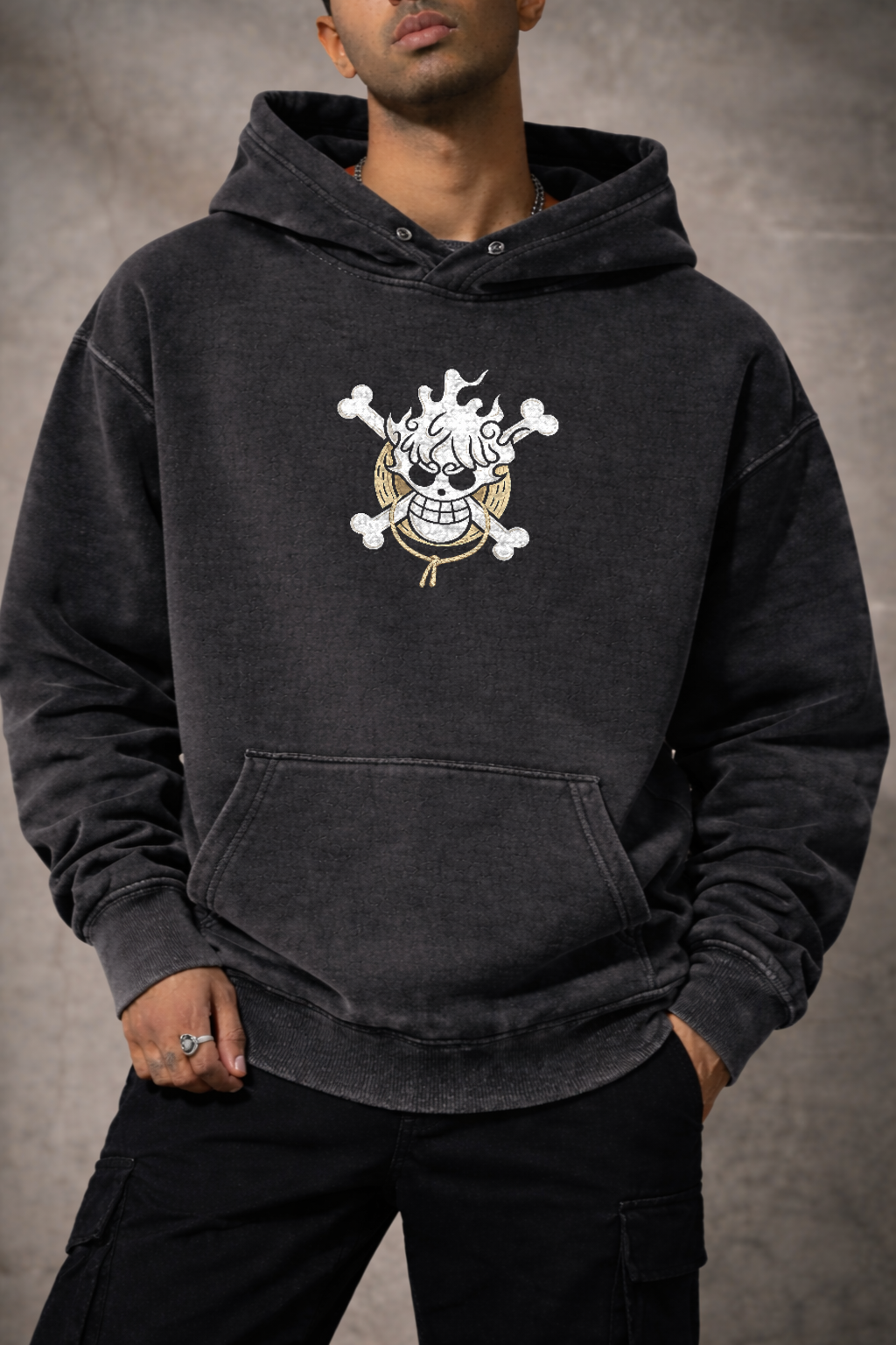 Gear 5 Luffy Acid-Wash Hoodie | Charcoal